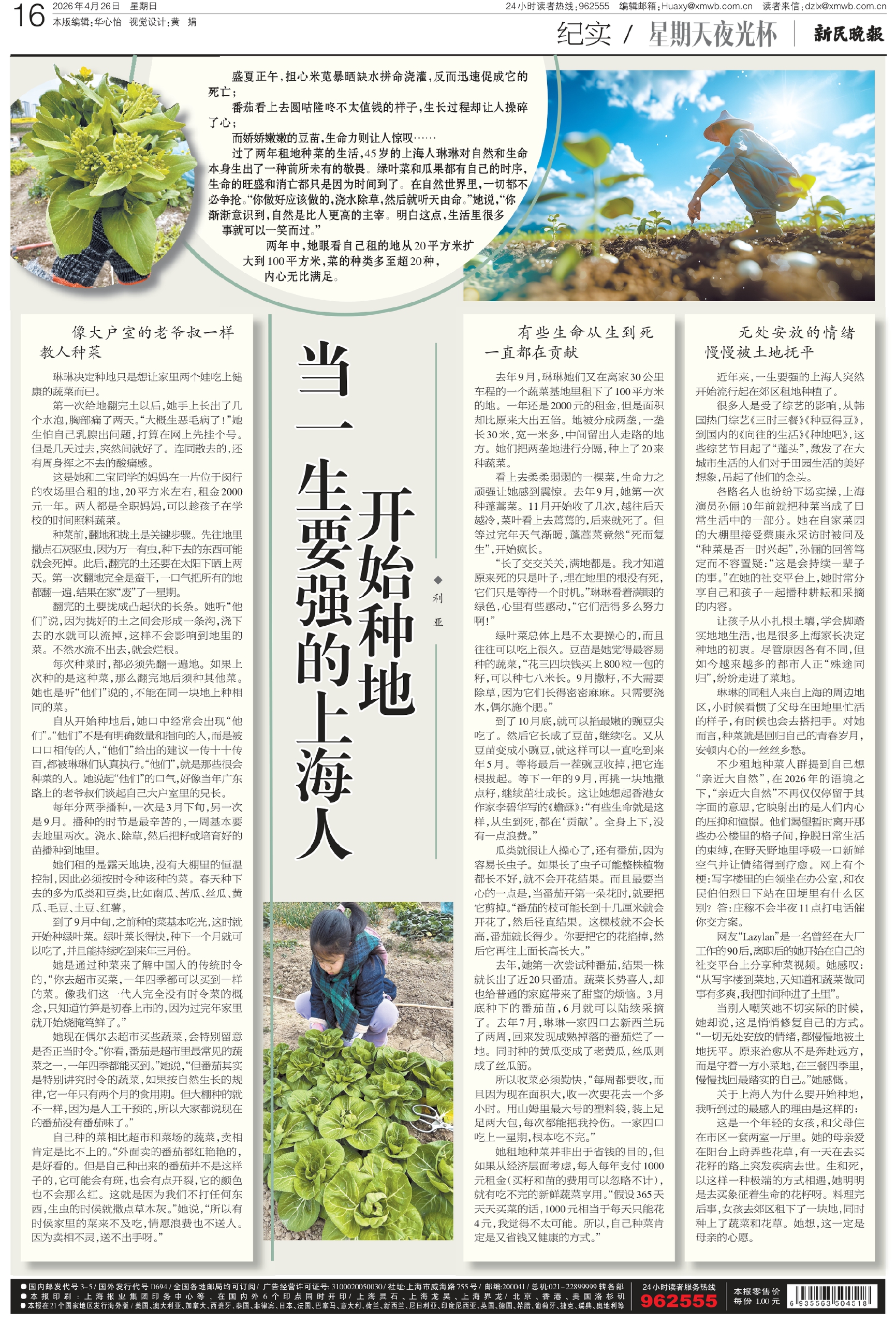 她是通过种菜来了解中国人的传统时令的,“你去超市买菜,一年四季都可以买到一样的菜。像我们这一代人完全没有时令菜的概念,只知道竹笋是初春上市的,因为过完年家里就开始烧腌笃鲜了。”