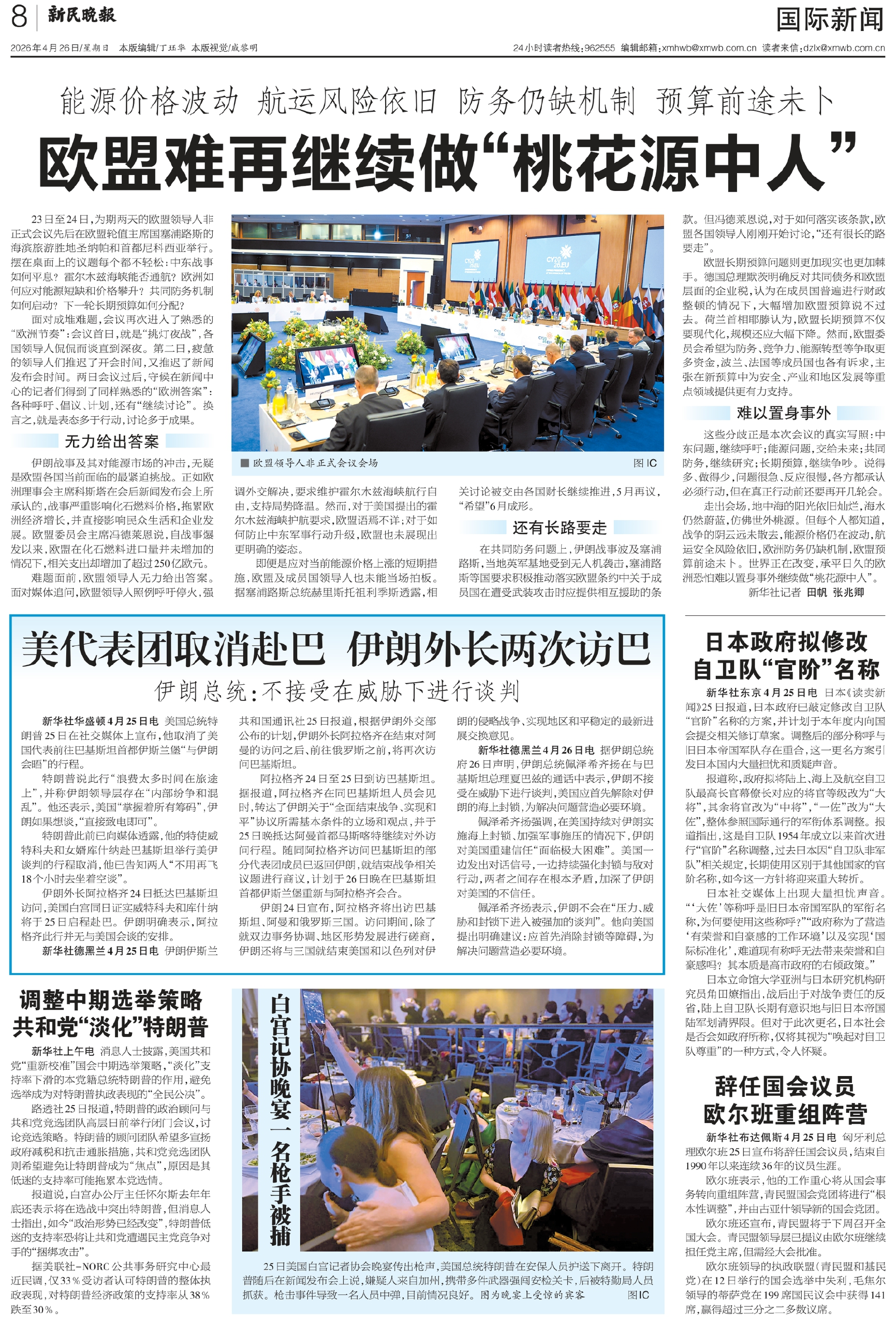 走出会场,地中海的阳光依旧灿烂,海水仍然蔚蓝,仿佛世外桃源。但每个人都知道,战争的阴云远未散去,能源价格仍在波动,航运安全风险依旧,欧洲防务仍缺机制,欧盟预算前途未卜。世界正在改变,承平日久的欧洲恐怕难以置身事外继续做“桃花源中人”。