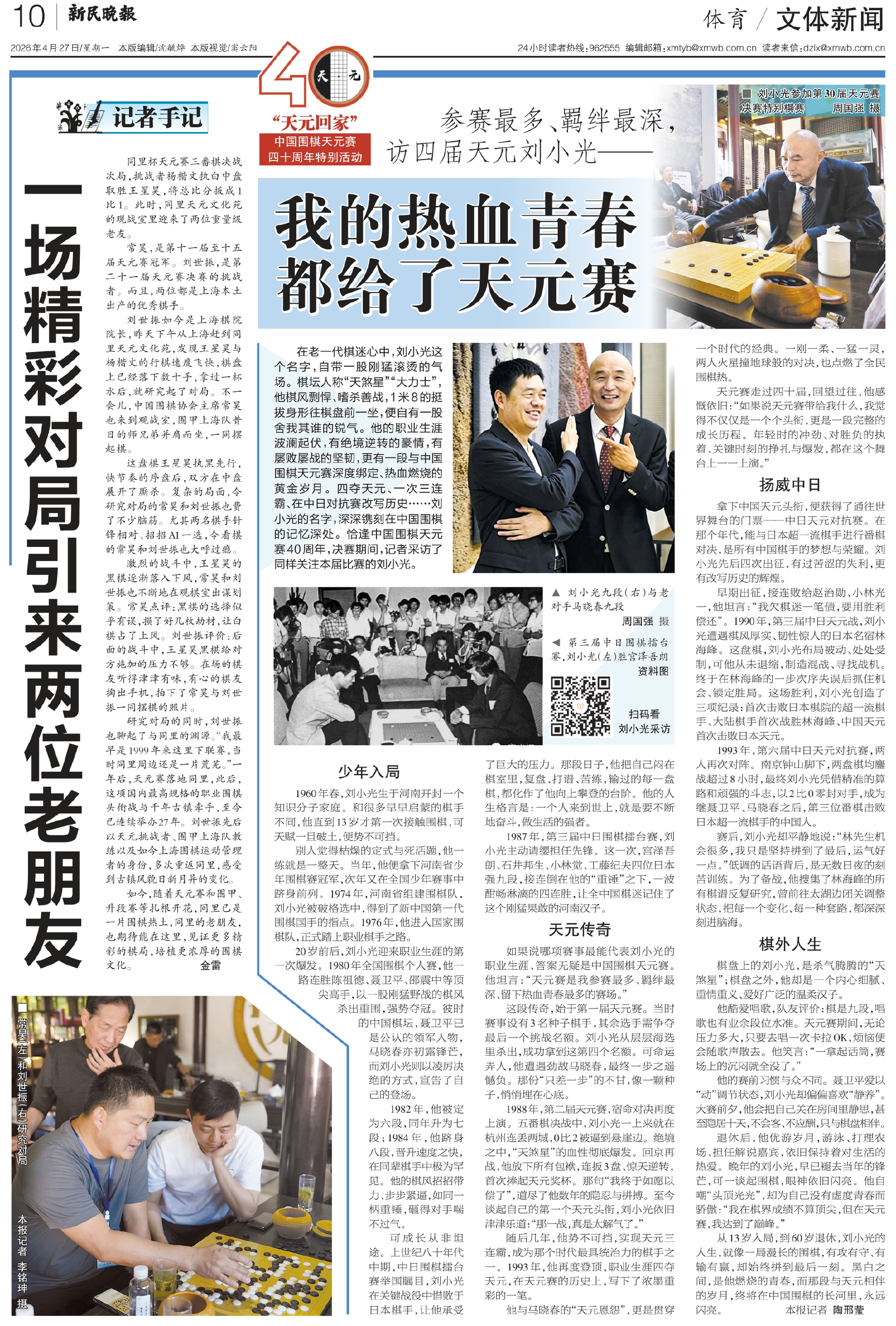 研究对局的同时,刘世振也聊起了与同里的渊源。“我最早是1999年来这里下联赛,当时同里周边还是一片荒芜。”一年后,天元赛落地同里,此后,这项国内最高规格的职业围棋头衔战与千年古镇牵手,至今已连续举办27年。刘世振先后以天元挑战者、围甲上海队教练以及如今上海围棋运动管理者的身份,多次重返同里,感受到古镇风貌日新月异的变化。