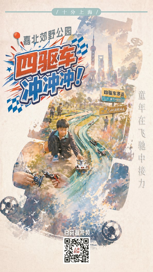 俯身把车送入赛道,追逐模型尽情奔跑。预备,出发! 4月,上海首条面向市民免费开放的四驱车赛道在嘉北郊野公园亮相。小小的四驱车,对许多“80后”“90后”来说,既是童年伙伴,也是青春印记。跟随“十分上海”的镜头,和结伴来此的老男孩聊聊儿时的梦想,与醉心速度的小朋友讲讲拼装的快乐。 本报记者董怡虹 孔明哲 萧君玮