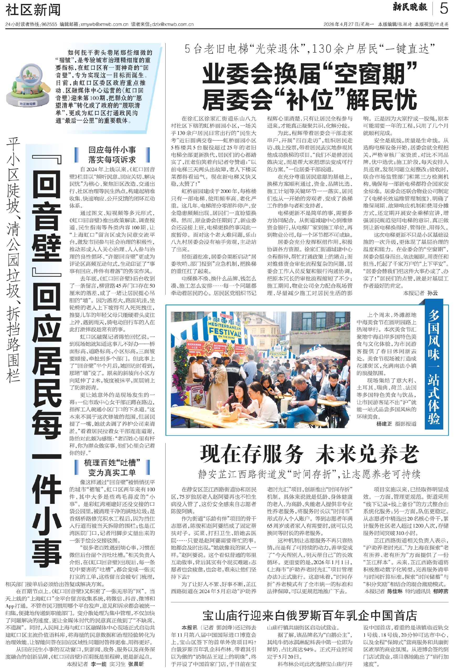宝山庙行迎来白俄罗斯百年乳企中国首店 多国风味一站式体验 现在存服务 未来兑养老 业委会换届“空窗期” 居委会“补位”解民忧 “回音壁”回应居民每一件小事