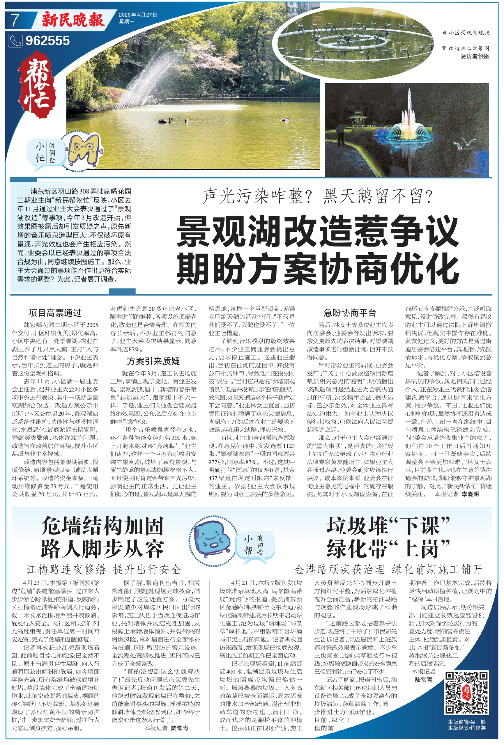 随后,林女士等多位业主代表向居委会、业委会等发出诉求,要求变更原先的表决结果,对景观湖改造事项进行重新征询,但并未获得同意。
