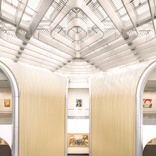 上海嘉艺术以“花朵叶脉扎根地面、向天空延展无限可能”为设计灵感,模拟自然界花朵叶脉的生长方式,由内向外延展生长。步入展厅,像真的走进了一朵花的内部,入口处光线较暗,走到中心才可见光。从建筑外观看,花瓣立面与城市肌理相得益彰。展馆总建筑面积约5000平方米,采用南北双核布局,设有专业级艺术品陈列展厅、数字展厅、文创商店与艺术沙龙,精巧的设计让场馆本身成为一个建筑艺术作品,成为可以打卡的时尚艺术空间。
