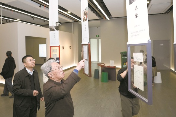著名作家王蒙在展览现场自己当年的书信前驻足 本报记者 李铭珅 摄