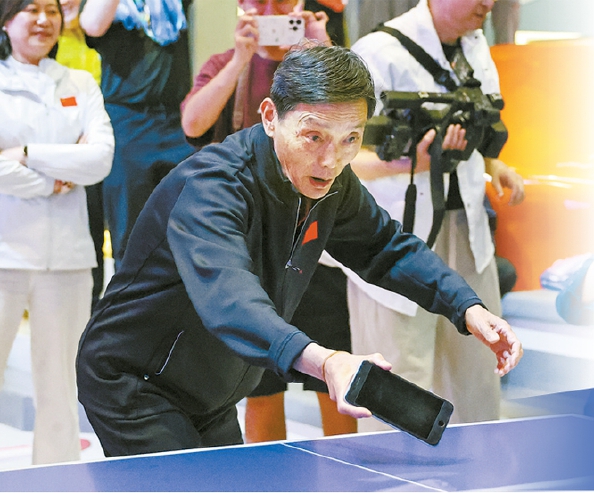 体育运动成为一种嵌入式的城市生活方式。通过创新项目,虹口在“国球进商圈”的持续推进中,让乒乓球运动在城市空间中焕发了新的活力。现场设置的市民体验区,很快排起了队。有人小心翼翼地推挡,有人兴奋地尝试扣杀。更多人则是在笑声中完成了人生第一次“手机对拉”。徐寅生还自嘲:“我昨天在巨鹿路第一小学和学生打课桌乒乓,输给了小朋友。现在我来和大家打手机乒乓,说不定你们也能赢我。”