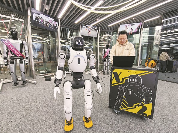 研发人员在具身工坊调试机器人