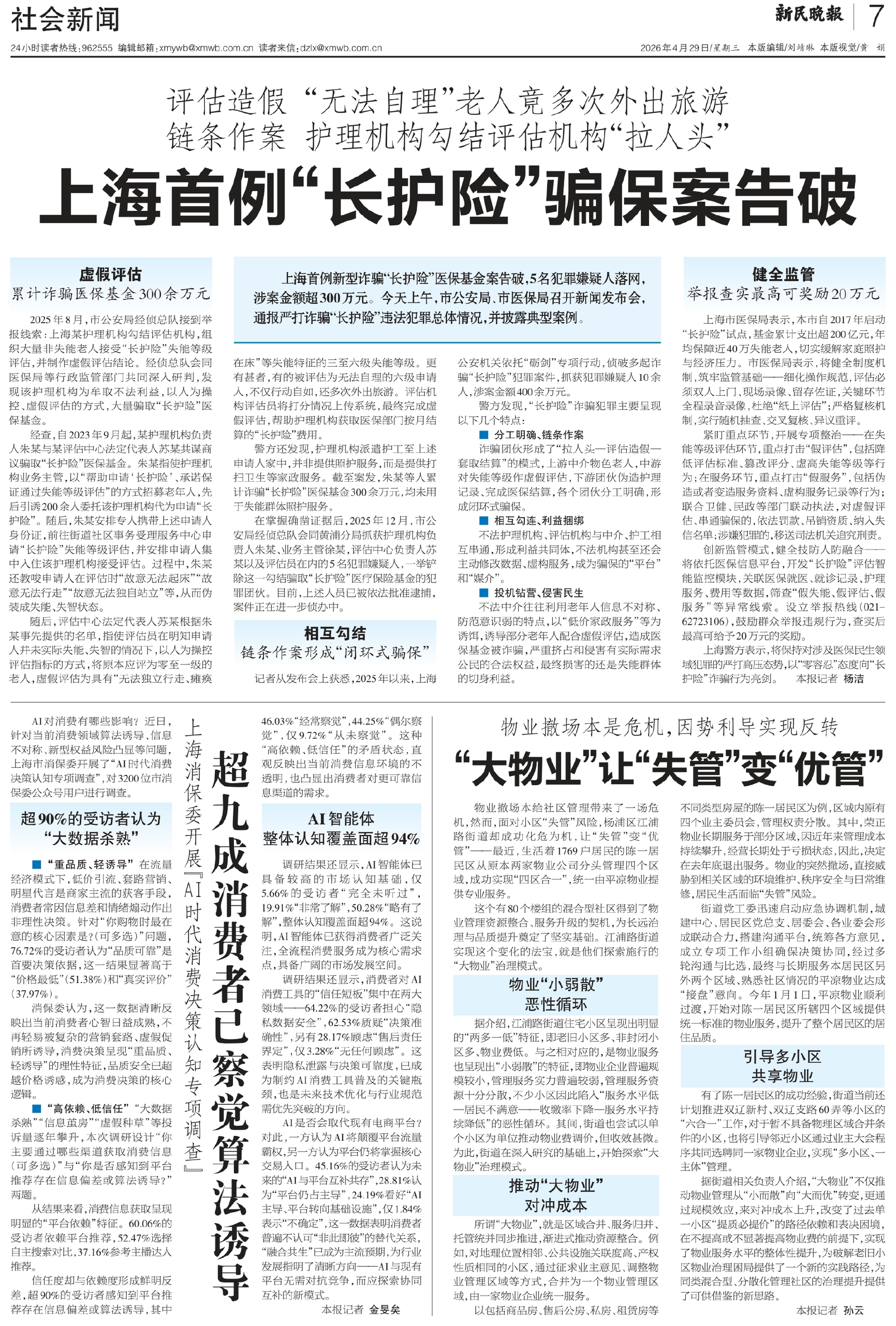 创新监管模式,健全技防人防融合——将依托医保信息平台,开发“长护险”评估智能监控模块,关联医保就医、就诊记录、护理服务、费用等数据,筛查“假失能、假评估、假服务”等异常线索。设立举报热线(021-62723106),鼓励群众举报违规行为,查实后最高可给予20万元的奖励。