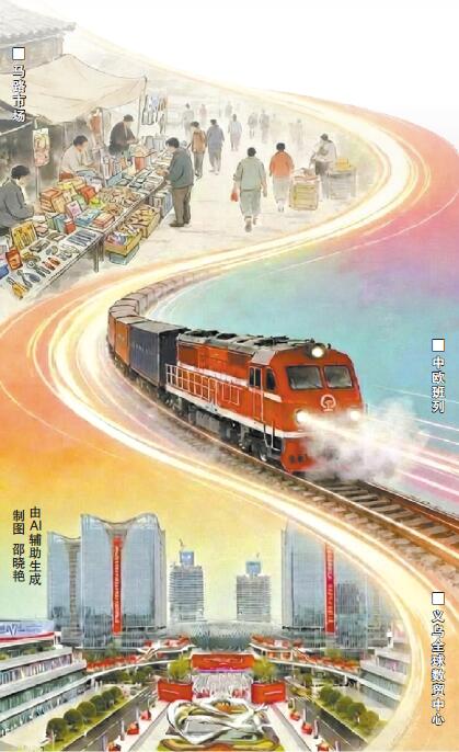马路市场 中欧班列 义乌全球数贸中心 制图 邵晓艳 由AI辅助生成