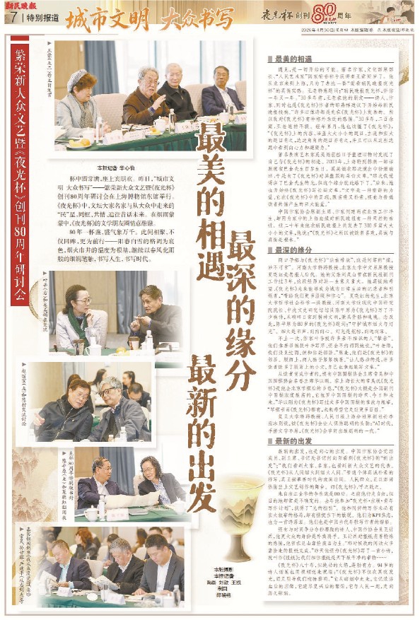 杯中酒常满,座上宾朋欢。昨日,“城市文明 大众书写”——繁荣新大众文艺暨《夜光杯》创刊80周年研讨会在上海博物馆东馆举行。活动现场,文坛大家名家与从大众中走来的“民”星,同框、共情、追往昔话未来。在烟雨蒙蒙中,《夜光杯》的文学朋友圈情意融融。