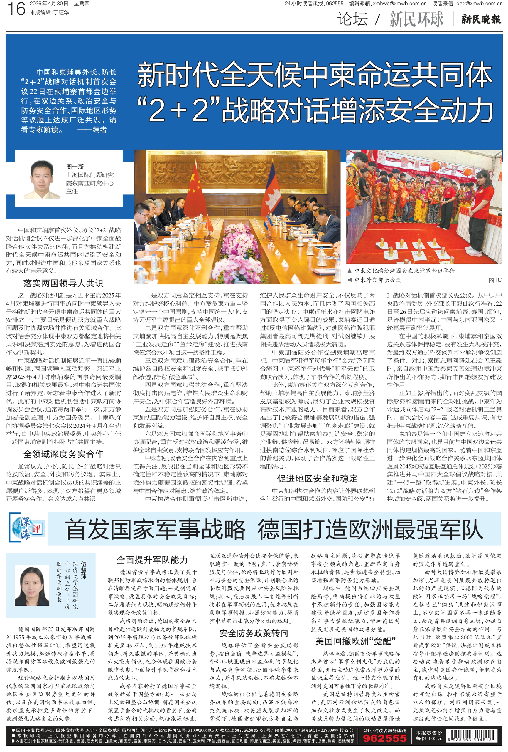 中国和柬埔寨外长、防长“2+2”战略对话机制首次会议22日在柬埔寨首都金边举行,在双边关系、政治安全与防务安全合作、国际地区形势等议题上达成广泛共识。请看专家解读。 ——编者