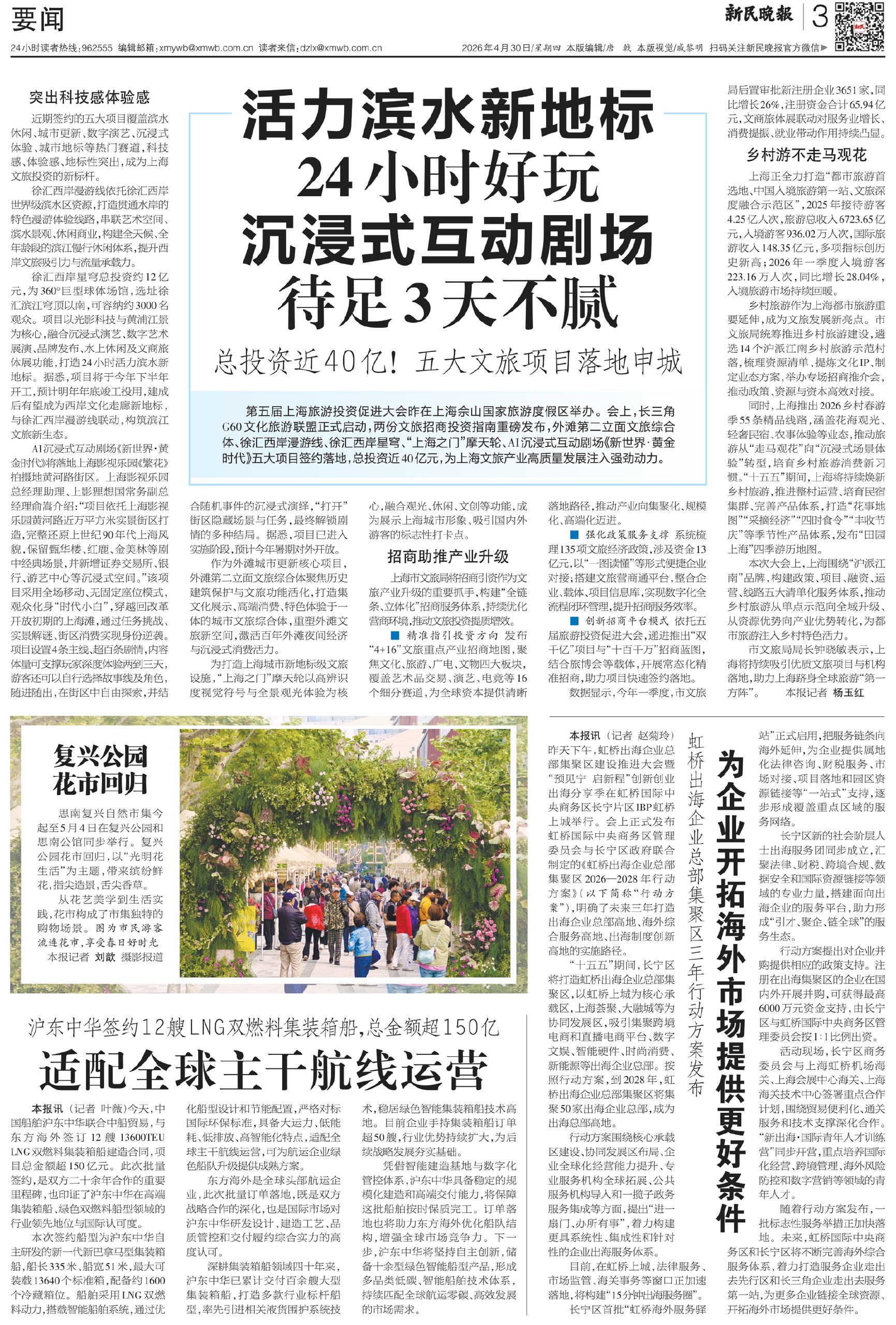 近期签约的五大项目覆盖滨水休闲、城市更新、数字演艺、沉浸式体验、城市地标等热门赛道,科技感、体验感、地标性突出,成为上海文旅投资的新标杆。