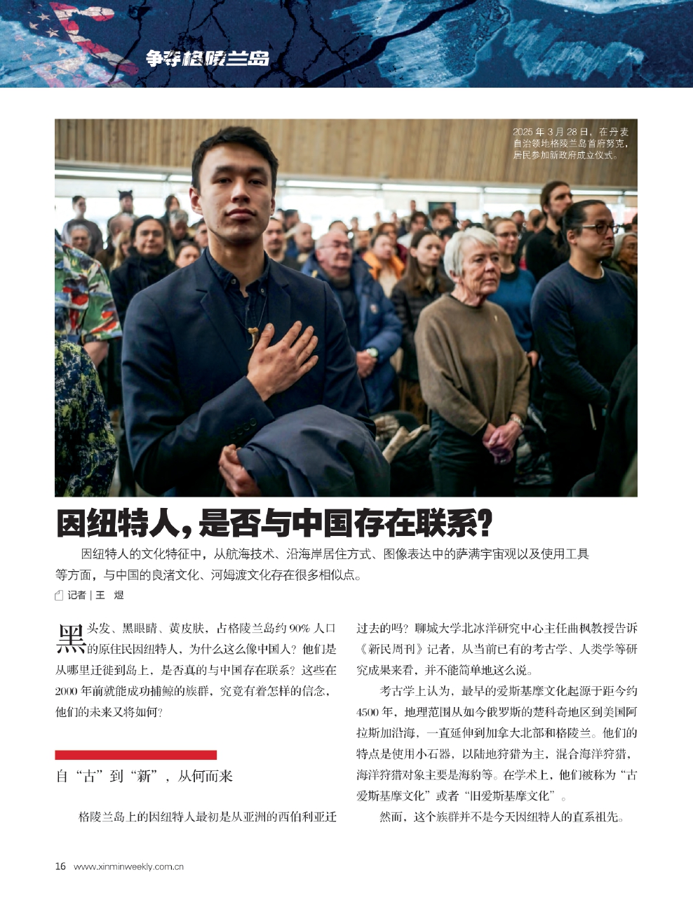 格陵兰岛上的因纽特人最初是从亚洲的西伯利亚迁过去的吗?聊城大学北冰洋研究中心主任曲枫教授告诉《新民周刊》记者,从当前已有的考古学、人类学等研究成果来看,并不能简单地这么说。