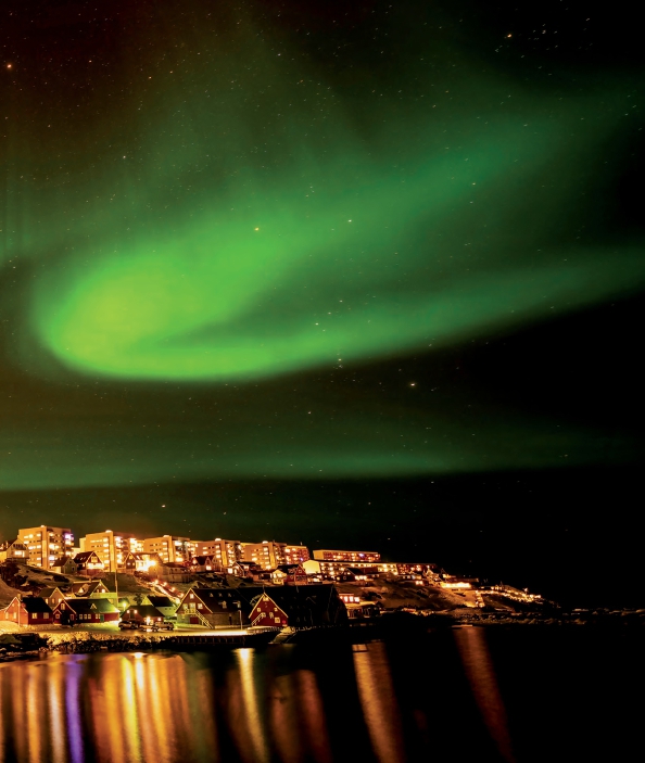 在丹麦自治领地格陵兰岛首府努克拍摄的北极光。