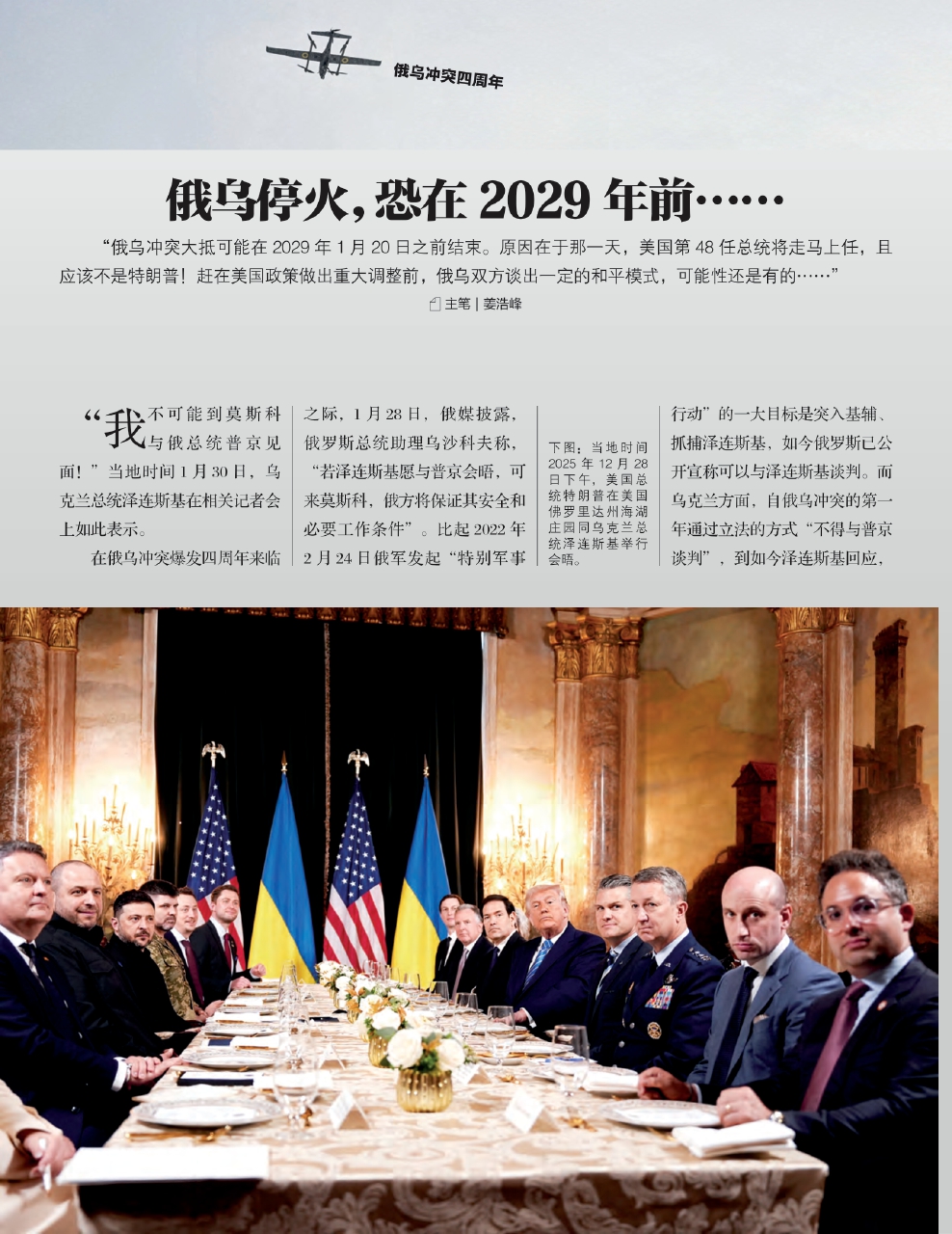 泽连斯基政府在国内难以接受明显让步的方案;与此同时,欧洲内部意见分裂,无法形成统一促和阵线,俄罗斯也不相信欧洲的“安全保障”承诺。也许,俄乌之间的战事,要从2026年迈向2027年,甚至迈向更长远的未来。苏州大学讲席教授、全球化智库副主任高志凯日前预言,俄乌冲突大抵可能在2029年1月20日之前结束。原因在于那一天,美国第48任总统将走马上任,且应该不是特朗普!赶在美国政策做出重大调整前,俄乌双方谈出一定的和平模式,可能性还是有的……