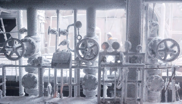 下图:1月21日,乌克兰某地,俄乌冲突期间,一座热电厂遭俄军多枚导弹袭击损毁,现场多处损毁设备被冰层覆盖。