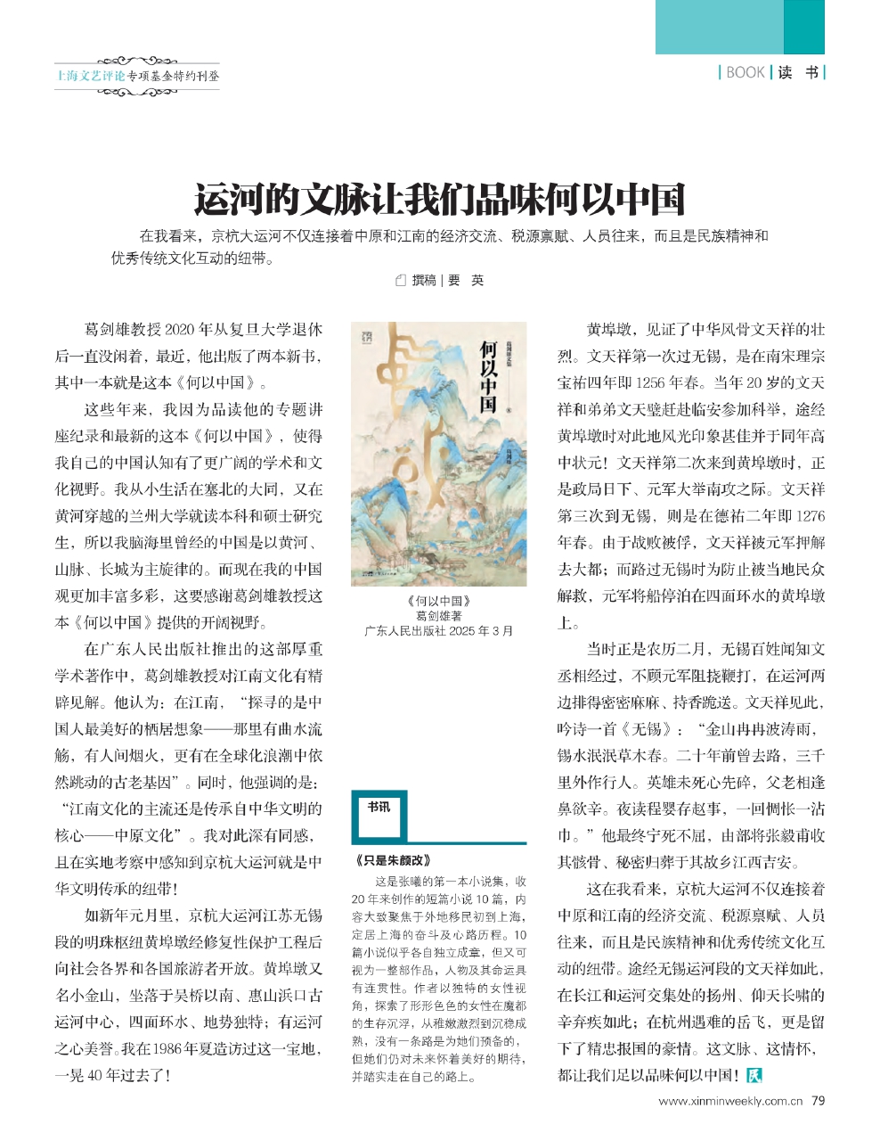 在广东人民出版社推出的这部厚重学术著作中,葛剑雄教授对江南文化有精辟见解。他认为:在江南,“探寻的是中国人最美好的栖居想象——那里有曲水流觞,有人间烟火,更有在全球化浪潮中依然跳动的古老基因”。同时,他强调的是:“江南文化的主流还是传承自中华文明的核心——中原文化”。我对此深有同感,且在实地考察中感知到京杭大运河就是中华文明传承的纽带!