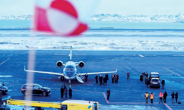 1月23日,丹麦首相弗雷泽里克森乘坐飞机抵达丹麦自治领地格陵兰岛首府努克。