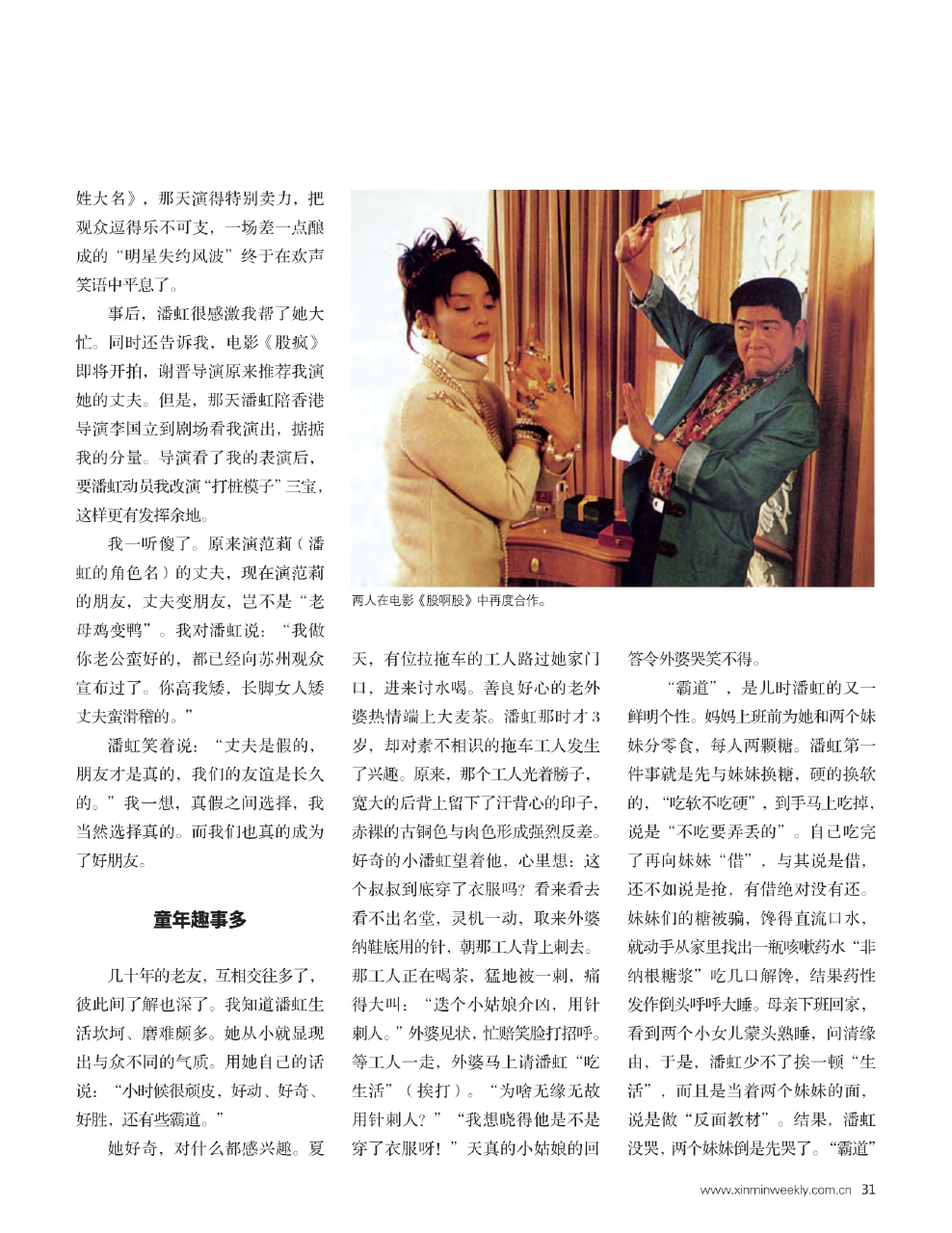 几十年的老友,互相交往多了,彼此间了解也深了。我知道潘虹生活坎坷、磨难颇多。她从小就显现出与众不同的气质。用她自己的话说:“小时候很顽皮,好动、好奇、好胜,还有些霸道。”