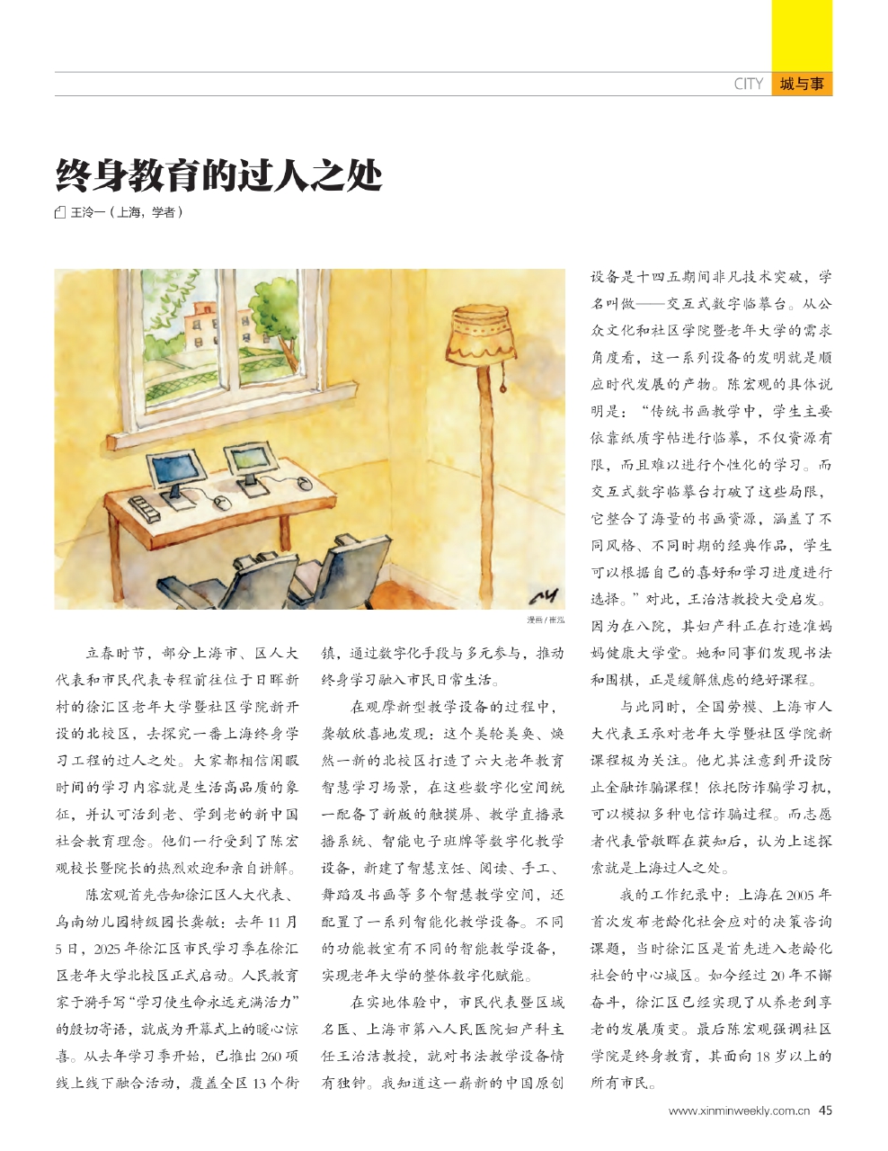 我的工作纪录中:上海在2005年首次发布老龄化社会应对的决策咨询课题,当时徐汇区是首先进入老龄化社会的中心城区。如今经过20年不懈奋斗,徐汇区已经实现了从养老到享老的发展质变。最后陈宏观强调社区学院是终身教育,其面向18岁以上的所有市民。