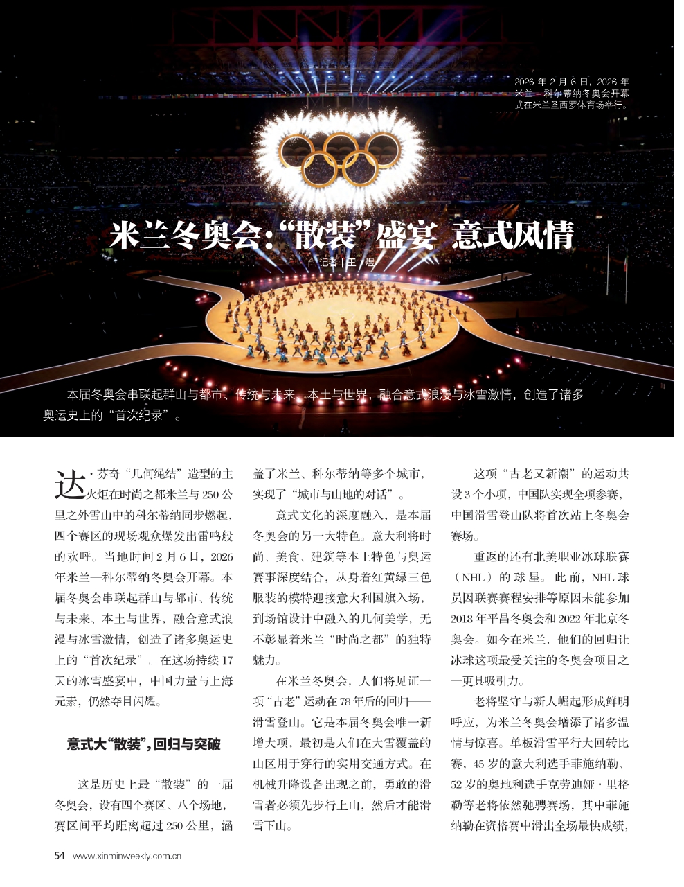 本届冬奥会串联起群山与都市、传统与未来、本土与世界,融合意式浪漫与冰雪激情,创造了诸多奥运史上的“首次纪录”。
