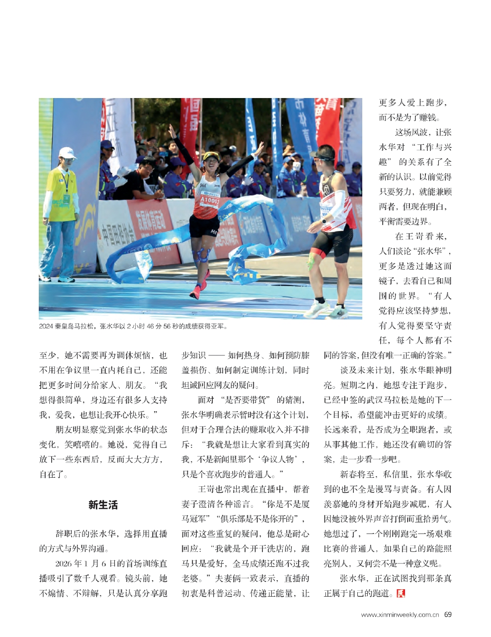 新春将至,私信里,张水华收到的也不全是谩骂与责备。有人因羡慕她的身材开始跑步减肥,有人因她没被外界声音打倒而重拾勇气。她想过了,一个刚刚跑完一场艰难比赛的普通人,如果自己的路能照亮别人,又何尝不是一种意义呢。