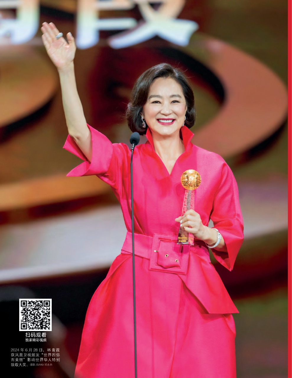 2024年6月28日,林青霞获凤凰卫视颁发“世界因你而美丽”影响世界华人特别致敬大奖。摄影/SWKit邓永杰