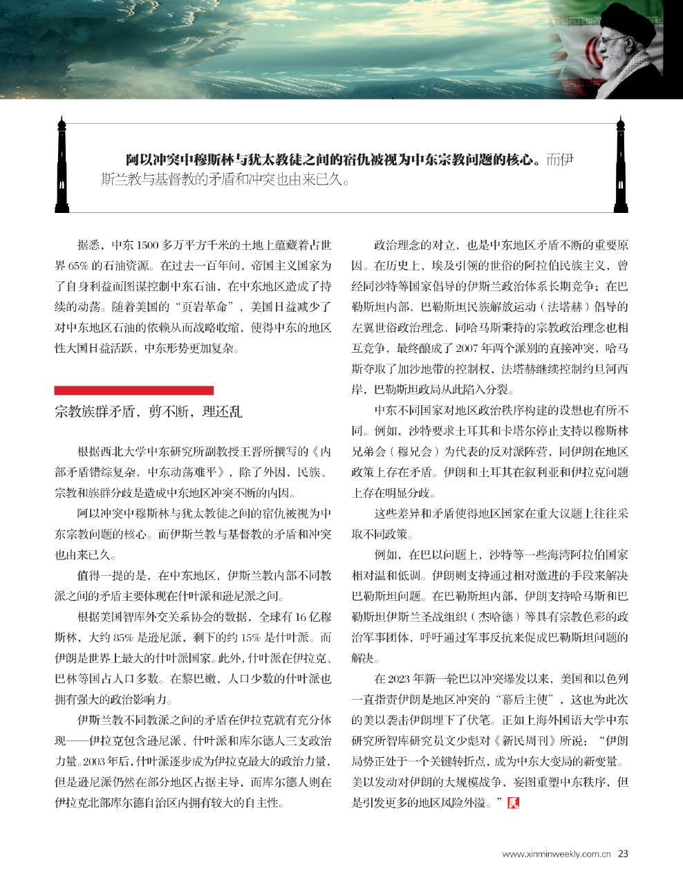 在2023年新一轮巴以冲突爆发以来,美国和以色列一直指责伊朗是地区冲突的“幕后主使”,这也为此次的美以袭击伊朗埋下了伏笔。正如上海外国语大学中东研究所智库研究员文少彪对《新民周刊》所说:“伊朗局势正处于一个关键转折点,成为中东大变局的新变量。美以发动对伊朗的大规模战争,妄图重塑中东秩序,但是引发更多的地区风险外溢。”