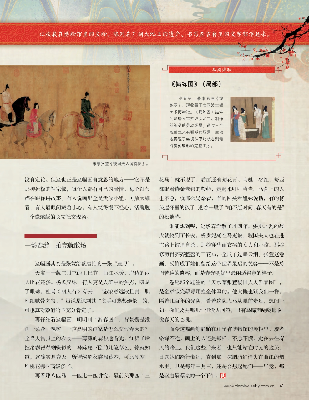 而今这幅画静静躺在辽宁省博物馆的展柜里,观者络绎不绝。画上的人还是那样,不急不慌,走在去往春天的路上。我们这些后来者,也只能站在时光的这头,目送她们渐行渐远,直到那一抹胭脂红消失在曲江的烟水里。只是每年三月三,还是会想起她们——毕竟,那是盛唐最漂亮的一个下午。