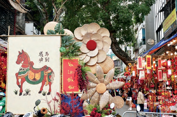 上图:这是2月13日在越南首都河内的马市街拍摄的马年新春装饰。
