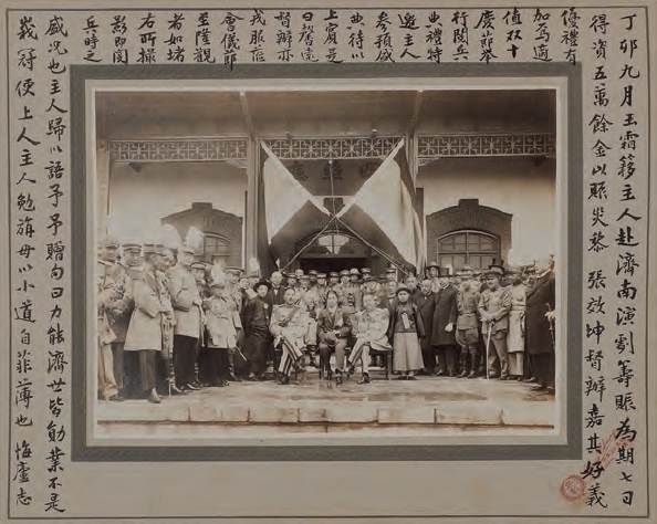 右图:程砚秋于1927年10月赴济南,与当时政军要员合影。