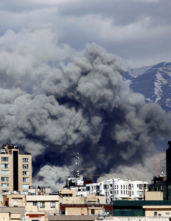 2026年3月1日,伊朗德黑兰,美国与以色列发动袭击,当地发生爆炸浓烟滚滚,强烈的爆炸冲击波导致伊朗国家电视台建筑受损,并造成两名工作人员遇难。
