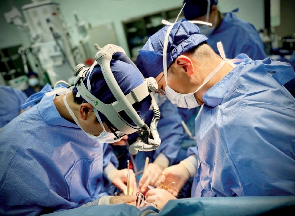 上图:上海市肺科医院院长、胸外科专家陈昶教授在手术中。