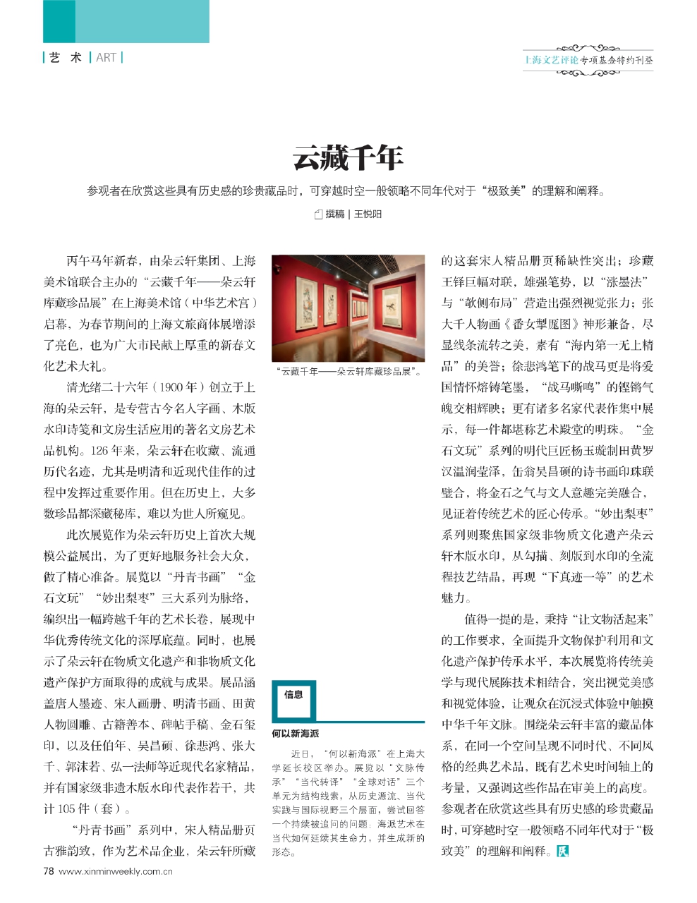 丙午马年新春,由朵云轩集团、上海美术馆联合主办的“云藏千年——朵云轩库藏珍品展”在上海美术馆(中华艺术宫)启幕,为春节期间的上海文旅商体展增添了亮色,也为广大市民献上厚重的新春文化艺术大礼。