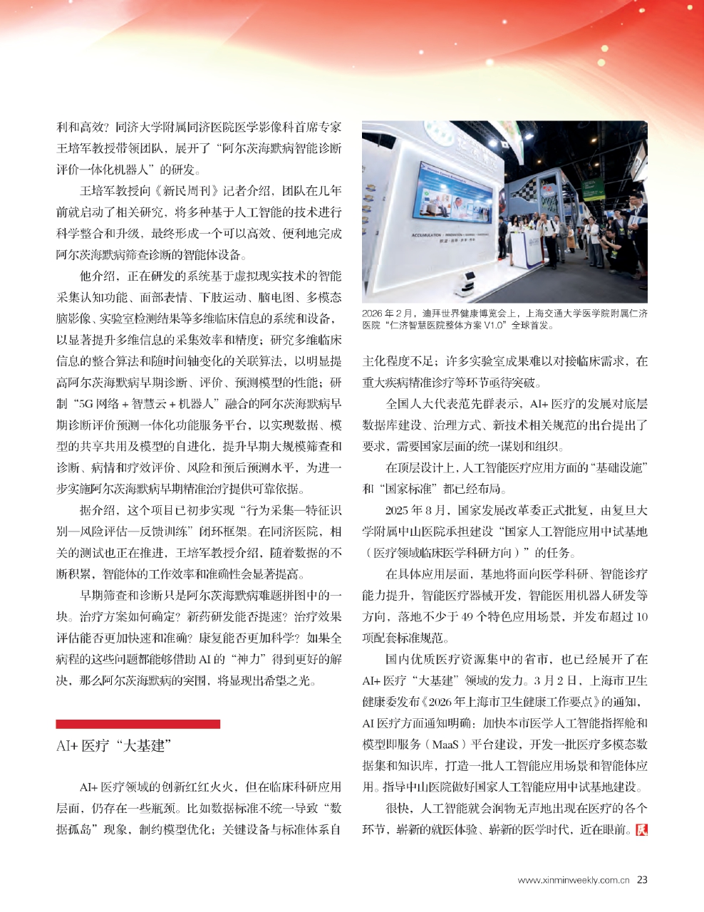 王培军教授向《新民周刊》记者介绍,团队在几年前就启动了相关研究,将多种基于人工智能的技术进行科学整合和升级,最终形成一个可以高效、便利地完成阿尔茨海默病筛查诊断的智能体设备。