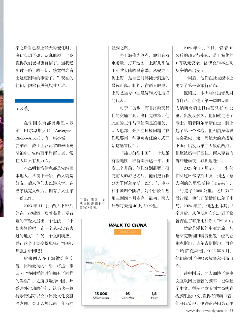 2024年9月,两个年轻人从法国安纳西(Annecy)出发,穿越15个国家,走过13000公里,于2025年9月进入中国,最终在2026年2月抵达上海。