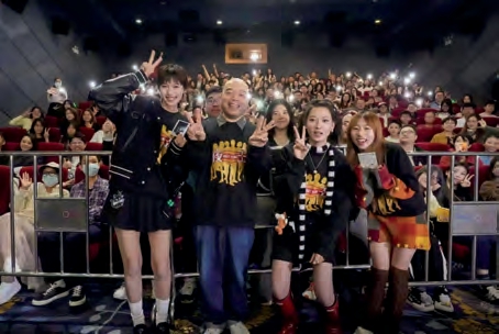 上图:导演吴祎伦(前排中)携主演参加电影路演。