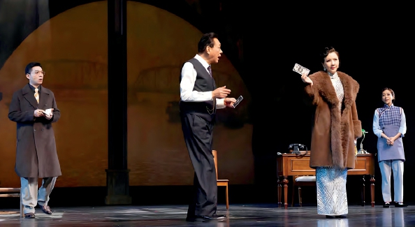 该剧在舞美上花了大功夫,在视觉呈现上,以ArtDeco装饰艺术风格为核心基调,集结了舞美设计桑琦、灯光设计韩关坤、舞美技师贡连照、造型化妆设计杨旭东等国内大咖设计团队,共同还原了上世纪30年代上海摩登又迷离的都市气质。戏的整体节奏感很强,音乐则以爵士乐与老上海时代曲为基调,并强调鼓点节奏的贯穿。打击乐是烘托剧情紧张感的无形发动机,确保全剧节奏紧凑,毫不松散,使观众一直沉浸在老上海的环境之中。多媒体投影与实景布景设计的结合,外滩的雾气、百乐门的霓虹、老唱片的咿呀声、黄浦江的浪涛声,构建了沉浸式的视听体验,瞬间就把观众拉回到了那个光怪陆离的年代,并为全剧增添了神秘感和梦幻感。