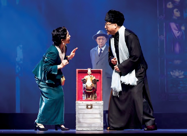 这样的定位,使《圆明园马首谜案》的演出,兼具喜剧、闹剧风格和悬疑特色,电影流动感与舞台写意性交织在一起。“马首”在剧中并非单纯的道具,而是被赋予了重要的象征意义。剧组所有部门都以此为创作前提,将“文物”流转的历程转化为探讨欲望与谎言中人性底线的现代寓言。这种“悬疑+喜剧”的贺岁剧配方,在上海的舞台并不多见。从演出的效果来看,这部作品既有强类型故事,又承载了强烈的文化情感,不只有“流量”,更有“留量”。
