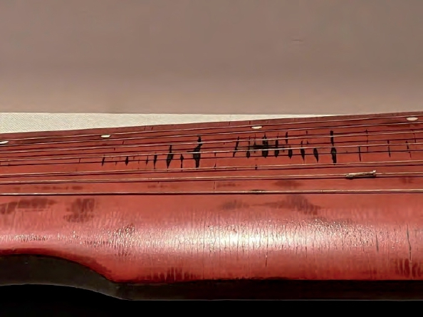 遥想在千年前的唐朝,那时候它还是崭新的,通体朱漆,光可鉴人。第一个弹它的乐师,指尖落下,该是怎样清越的一声响?它叫“九霄环佩”,意思是希望它的声音像仙人腰间玉佩碰撞那样,能传到九霄云外。可因为实在是太有名太珍稀了,估计这千百年间,真正能够撩动它琴弦的琴师屈指可数,能够真正有机会聆听其天籁的,更是凤毛麟角。它被供奉于博物馆恒温恒湿的展柜之中,化身为一件价值连城的文物。它不再需要回应知音的抚弄,而是要对抗时间的风化。它的价值,从那清越如击金石的动人音色,悄然转移到了琴身上那层斑驳陆离的鹿角灰胎与断纹之上。一件活泼泼的乐器,成了一件完美的、凝固的漆器标本,传承着盛唐雷氏的家族工艺。
