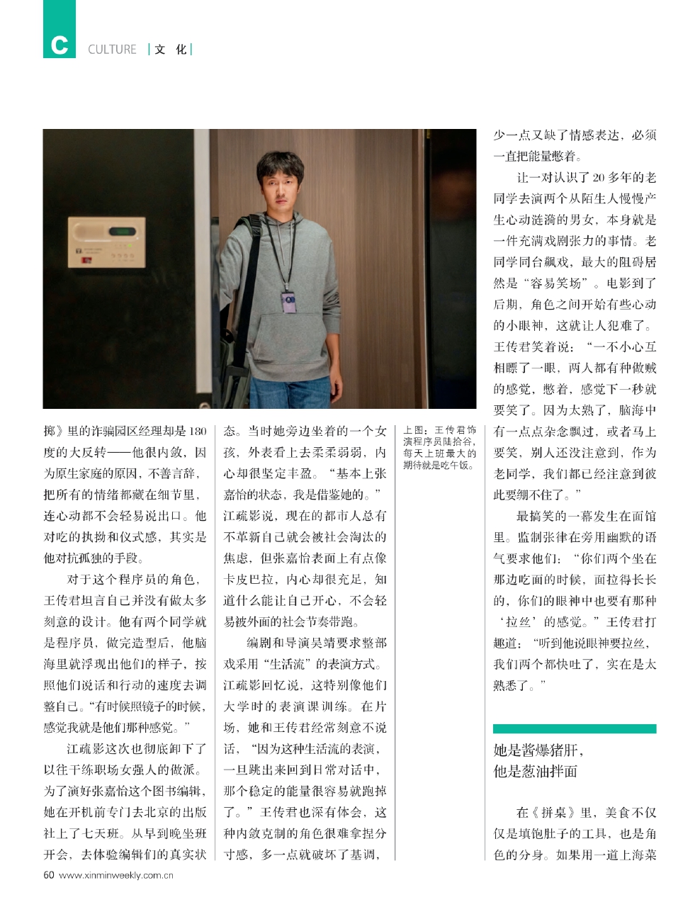 对于这个程序员的角色,王传君坦言自己并没有做太多刻意的设计。他有两个同学就是程序员,做完造型后,他脑海里就浮现出他们的样子,按照他们说话和行动的速度去调整自己。“有时候照镜子的时候,感觉我就是他们那种感觉。”