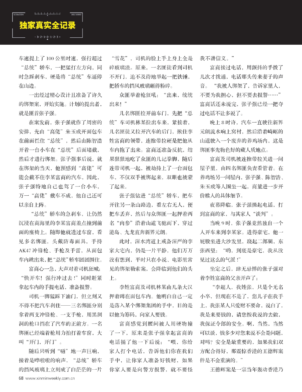 为权威、深度还原这段历史,本刊自本期起,独家连载长期追踪此案的羊城晚报高级记者刘海陵撰写的纪实作品。作为广东新闻界资深的政法记者,刘海陵长年从事公安政法题材的报道,亲历社会治安一线,见证了改革开放以来广东社会治安由乱到治的全过程,先后采访过张子强团伙案、番禺大劫案、“东星”轮案、南海警匪枪战、海盗案、“9601”毒品案等等震惊全国的大案。他以宏阔的视角、翔实的资料与冷静的笔触,首次系统性地揭示了张子强犯罪集团从滋生、猖獗到被彻底铲除的全过程,生动记录了粤港两地警方携手雷霆打击犯罪、捍卫法律尊严的卓越历程。