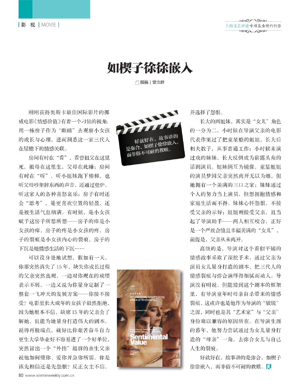 刚刚获得奥斯卡最佳国际影片的挪威电影《情感价值》有着一个刁钻的视角:用一栋房子作为“眼睛”去观察小女孩的成长与心理,进而洞悉这一家三代人在屋檐下的情感关联。