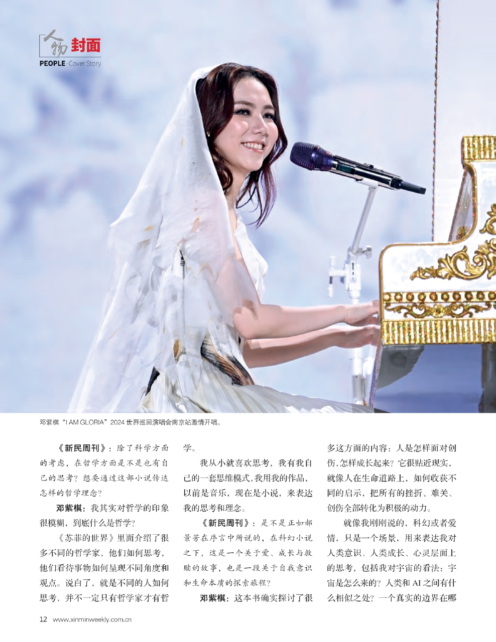 邓紫棋:其实我并不是只喜欢科幻小说,我喜欢所有能够触动我情感的作品。而且不仅是文学作品,我平时也很喜欢看神学方面的书、心理学的书,很喜欢去了解人性,去探究人类为何存在。