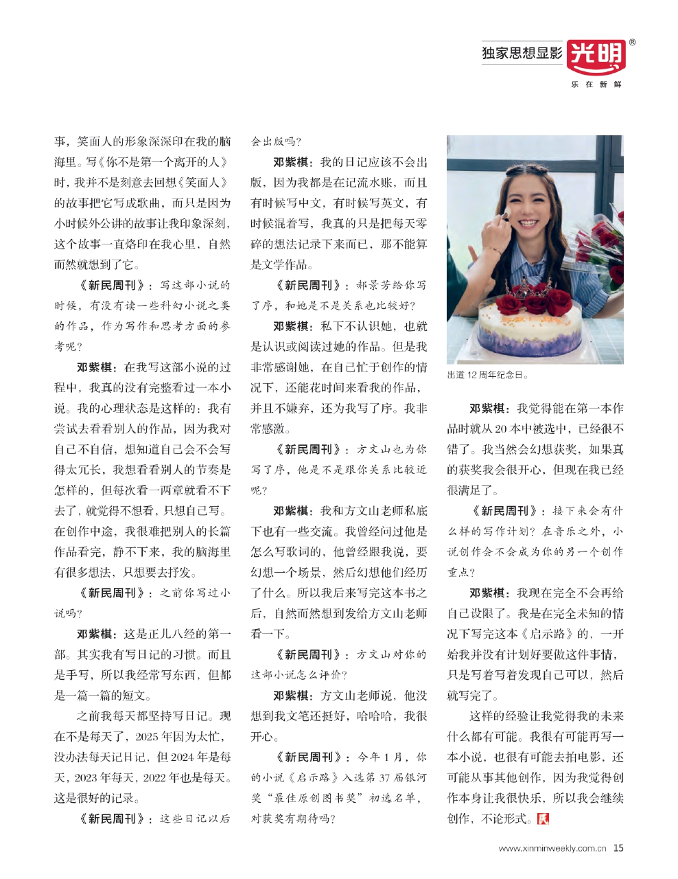 近日,邓紫棋接受了《新民周刊》记者的线上专访。她说:“我的小说治愈了我自己。”