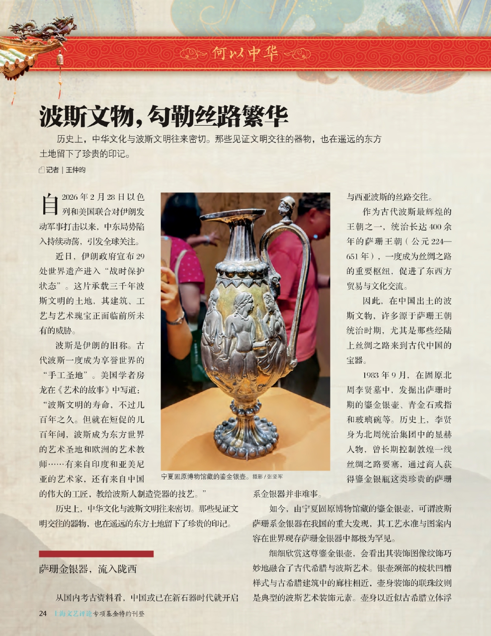 如今,由宁夏固原博物馆藏的鎏金银壶,可谓波斯萨珊系金银器在我国的重大发现,其工艺水准与图案内容在世界现存萨珊金银器中都极为罕见。