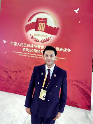 在中国纪念抗战胜利80周年大会上,方浩明作为外媒记者应邀观礼。