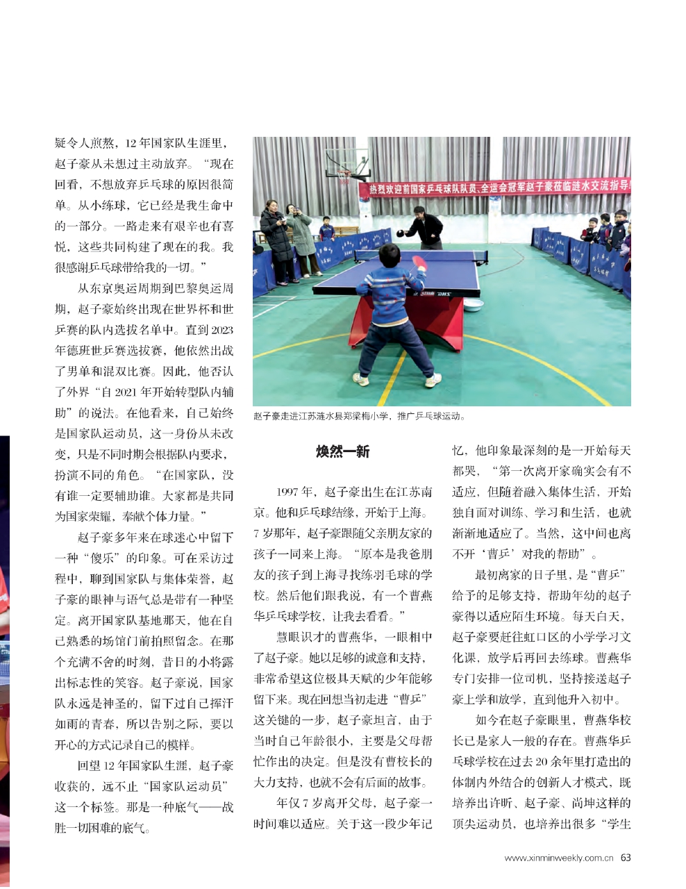 然而,即使无处安放的自我怀疑令人煎熬,12年国家队生涯里,赵子豪从未想过主动放弃。“现在回看,不想放弃乒乓球的原因很简单。从小练球,它已经是我生命中的一部分。一路走来有艰辛也有喜悦,这些共同构建了现在的我。我很感谢乒乓球带给我的一切。”