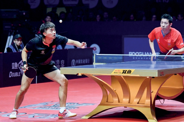2019国际乒联世界巡回赛总决赛男单八分之一决赛,赵子豪(左)vs许昕。