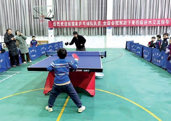 赵子豪走进江苏涟水县郑梁梅小学,推广乒乓球运动。