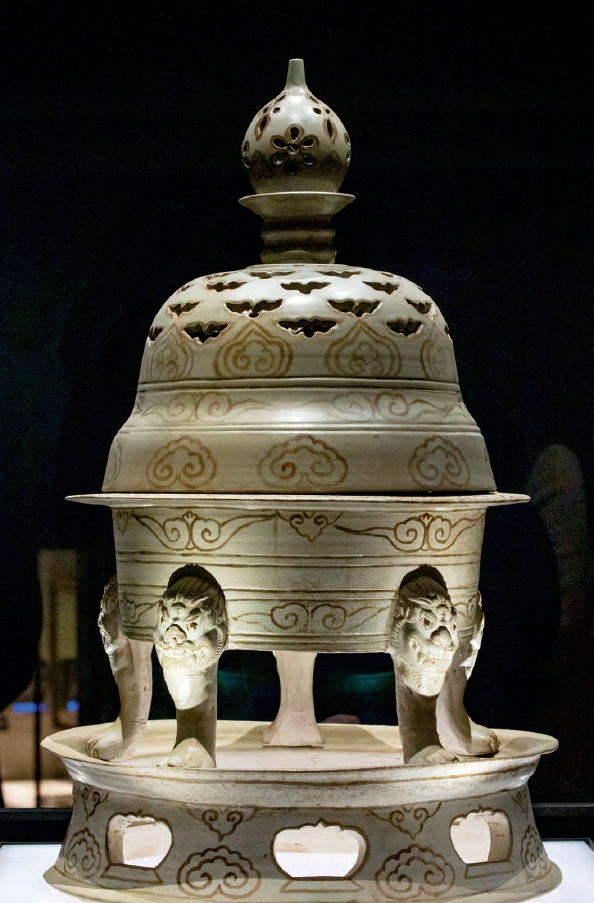 在杭州的吴越文化博物馆里,有三件“必看”的“国宝级文物”,它们分别是秘色瓷褐彩云纹熏炉、秘色瓷褐彩云纹盖罂和秘色瓷褐彩云纹油灯,均出土于吴越王钱镠的母亲水丘氏墓,都是秘色瓷的巅峰之作。